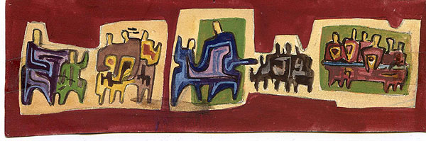 Das Gleichnis vom Großen Abendmahl, Entwurf. Gouache oder Wasserfarbe auf Papier, 51x160mm